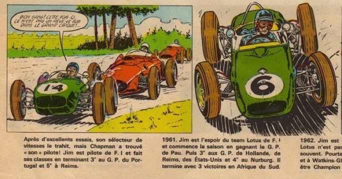 Dans les années 60, le dessinateur français Jean Pierre Boivent , réalise une mini-bande dessinée intitulée "JIM CLARK Super CHAMPION". Il y eu même une version italienne de la BD (voir en bas de la page...).
