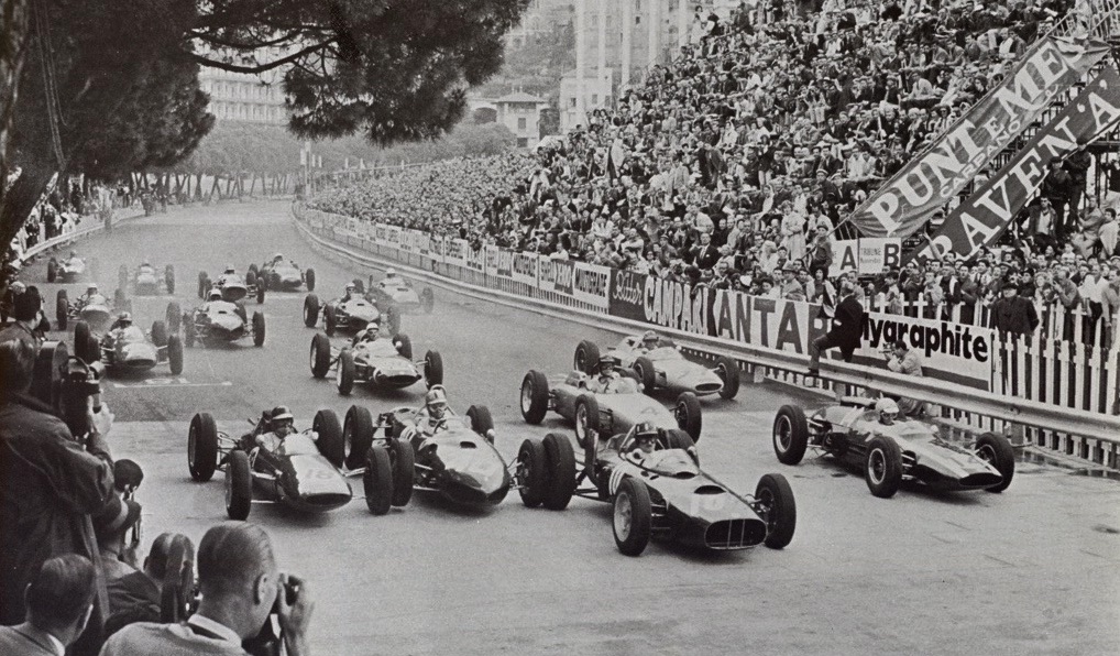 Grille de départ à Monaco avec Graham Hill sur sa BRM et Bruce McLaren sur Cooper Climlax