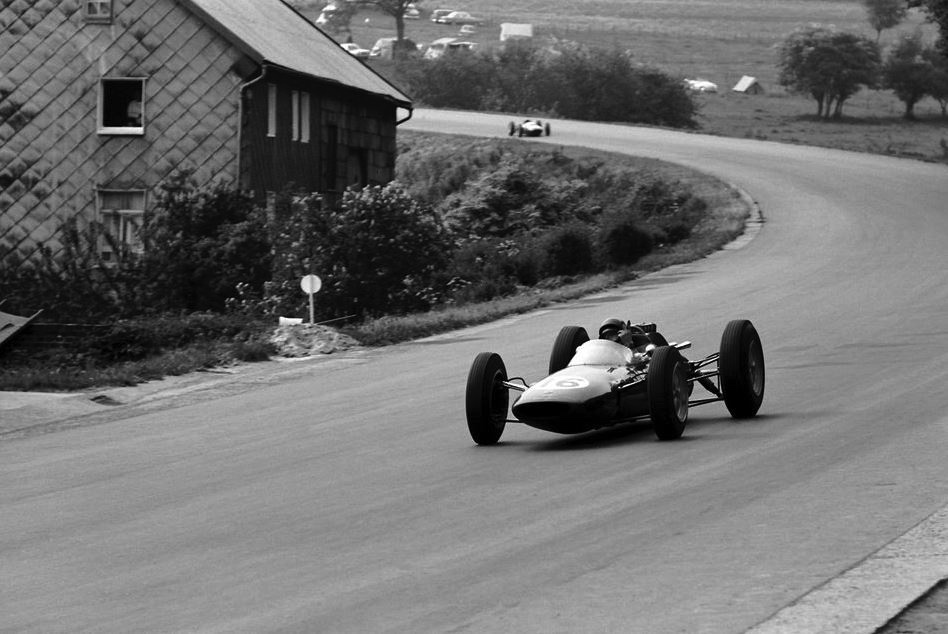 Vue d'en haut... JImmy à la poursuite de Lorenzo Bandini sur sa Ferrari