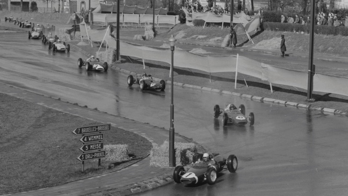 Départ du GP de Bruxelles (hors championnat)aux côtés de Stirling Moss et Graham Hill