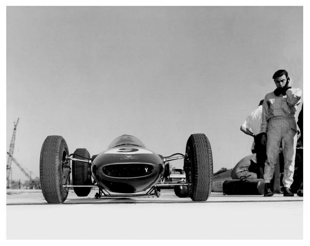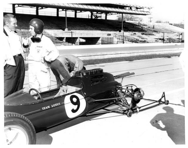 Colin Chapman, les mécaniciens Jim Andruweit et Dick Scammell arrivent sur l’ovale, et, après quelques réglages, Jim Clark effectue une centaine de tour qu’il trouve un peu monotone.