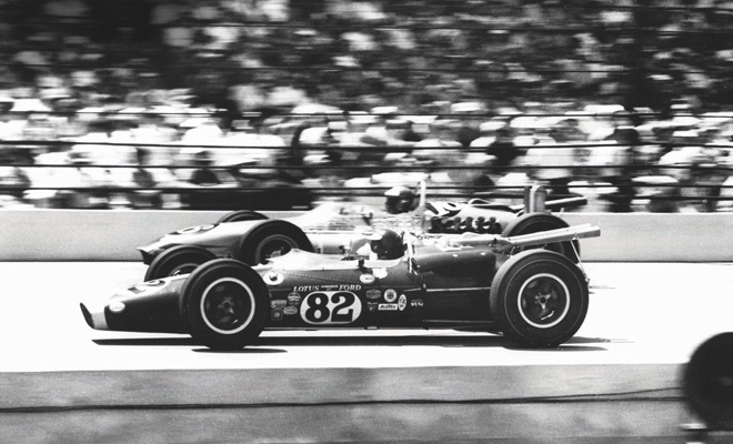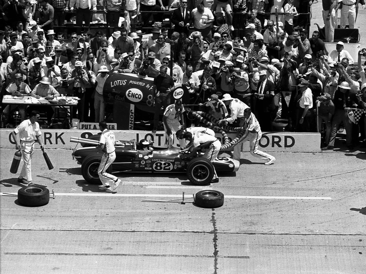 Après être venu se mesurer aux spécialistes d’Indianapolis en 1963 et 1964, Jim gagne sur la Lotus 38 dessinée par Colin Chapman et équipée avec un moteur V8 Ford.
