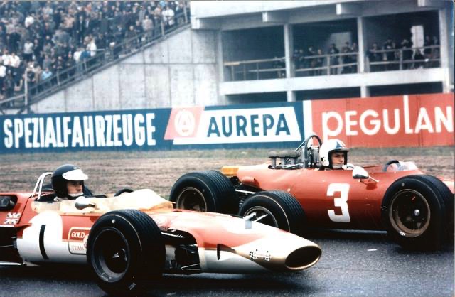Mal dégrossies, peut-être, mais non compétitives, c’est sans doute trop dire. En effet, Clark s’était qualifié au milieu de la première ligne, à 0,1 seconde seulement de Stewart (Matra) et devant Rindt (Brabham). En course, Clark avait abandonné au premier tour, suite à une collision avec Jacky Ickx. Ce qui l’avait mis d’ailleurs de fort méchante humeur à l’égard du jeune pilote belge. Franco Gozzi, un des bras droit d’Enzo Ferrari, apporte à ce sujet un témoignage intéressant « Je me rappelle avec quelle détermination Clark est venu dans notre stand après l’accident. « Dites à votre pilote (Ickx) de se calmer, dit-il dans un grognement empreint de colère, car en conduisant de cette façon, on va finir par se faire mal”. Il avait évidemment raison, et je lui ai demandé d’accepter nos excuses. Mais, pour conserver un peu de dignité, et ne pas avoir l’air de me mettre à plat ventre devant lui, je n’ai pas pu m’empêcher d’ajouter : « vous les Anglais, vous êtes tous les mêmes ; cela vous arrive aussi de faire des erreurs mais ce n’est jamais grave, c’est un fait de course. Mais quand c’est vous qui en êtes victimes, alors vous en faites un vrai drame”. En m’écoutant, le visage de Clark s’assombrit encore plus : « Je suis Ecossais, je ne suis pas Anglais; et je vous demande de ne jamais l’oublier« , répondit-il de façon glaciale » (Franco Gozzi, “Memoirs of Enzo Ferrari’s lieutenant”, Giorgio Nada Editore, 2002).