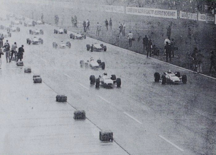Il y avait trois courtes séances d’essais le samedi et Clark avait par conséquent raté la première. La piste était sèche et la Matra de Jean Pierre Beltoise avait fait le meilleur temps, avec son coéquipier Henri Pescarolo en deuxième position. Pour Clark, c’était bien la preuve que Matra pouvait construire un bon châssis, et c’est ce qu’il avait déjà pu constater en Formule 1. Il savait que Jackie Stewart serait un concurrent redoutable lorsque sa nouvelle Matra serait au point, maintenant qu’ils disposaient tous deux du même moteur Ford Cosworth DFV. Clark ne put faire mieux que le septième temps [8], et il fut impressionné par la performance d’un nouveau venu appelé Derek Bell qui s’était qualifié devant lui à la cinquième place. Clark savait qu’il n’avait aucune chance de gagner la course. Le moteur avait des ratés par intermittence, il avait fait un violent tête-à-queue pendant les essais, et la voiture n’avait pu être réglée correctement pour la course. Dave Sims : « Mais Jimmy était quelqu’un de positif et, étant jeunes mécaniciens, nous ne nous inquiétions pas. Nous faisions notre travail normalement. Il n’y avait pas d’ailerons sur les voitures, pas de réglages aérodynamiques, tout était d’ordre mécanique. Quant aux pneus, ils étaient catastrophiques. »