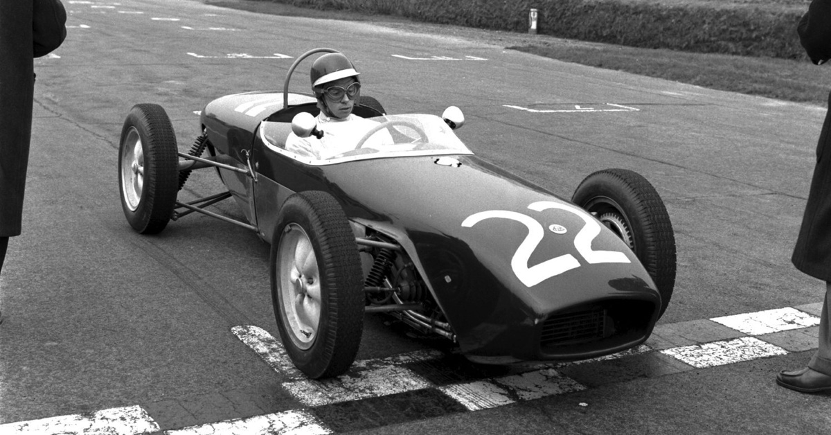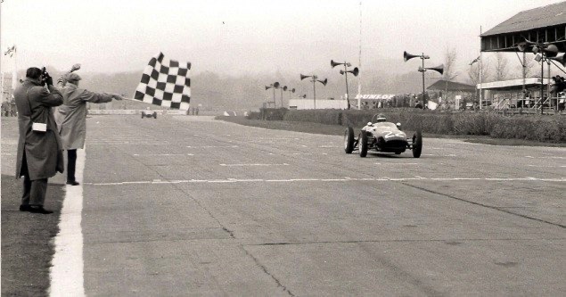 Sur le circuit d'Aintree avec la Lotus 18 FJ