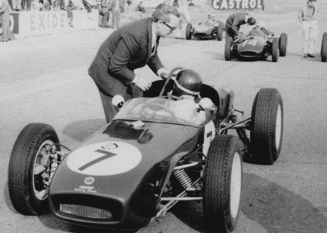 Colin Chapman veille sur la Lotus 18 de Jim à Snetterton