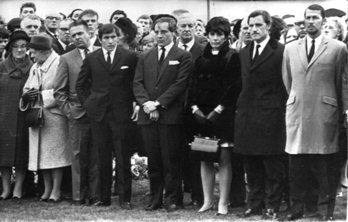 Le 11 avril 1968, dans le petit cimetière de Chirnside, en Ecosse, le petit monde de la Formule 1 est venue rendre un dernier hommage à leur ami Jim Clark, on reconnait au premier plan, Jackie Stewart, Innes Ireland, Bette et Graham Hill ainsi que Jo Bonnier