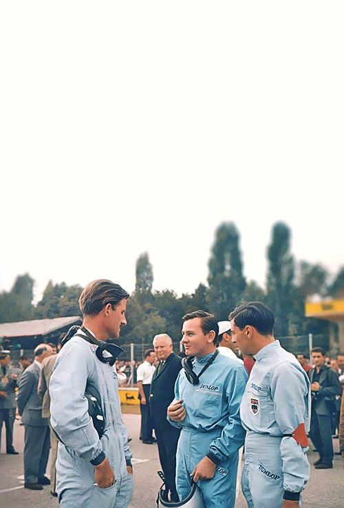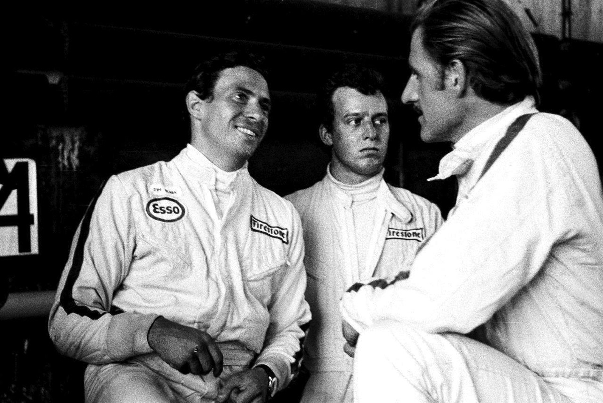 En grande discusion : Graham Hill, Bruce McLaren et Jim Clark