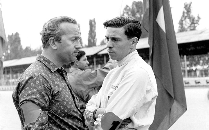 Conciliabule abec Graham Hill, son coéquipier, ami et rival