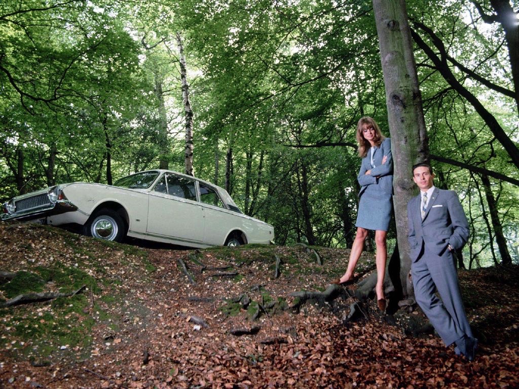 Jean Schrimpton Et son chauffeur Jim Clark pour le lancement de la nouvelle Ford Corsair.