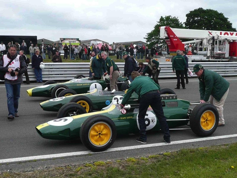 Le dimanche est un moment magique avec les anciennes F1 Lotus, amenées sur la piste pour une photo les regroupant de la Lotus 12 de Graham Hill à la 109 de Johnny Herbert sans oublier la Lotus 25 de Jim Clark, la n°. 8, ma préférée...