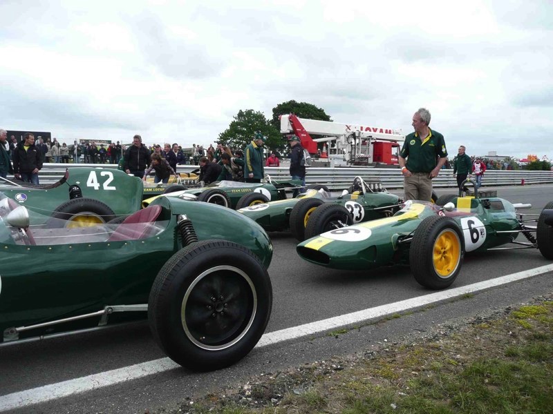 Le point fort de cette journée sera la photo d’Hazel Chapman, la veuve de Colin, posant devant les monoplaces alignées et, spontanément, mettant les bras en croix en regardant vers le ciel !