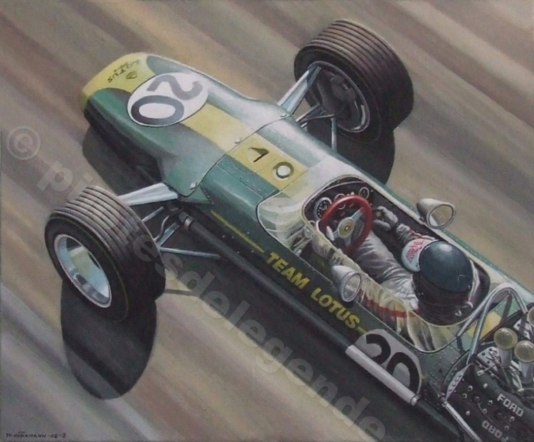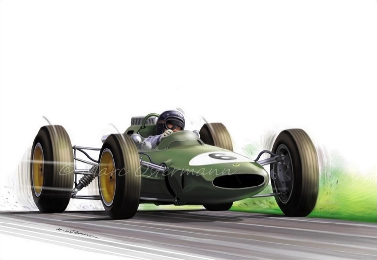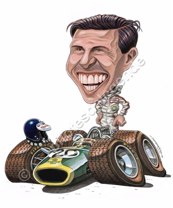 • La caricature de Jim Clark sur ... la Lotus N°. 20 du GP d’Italie à Monza en 1967