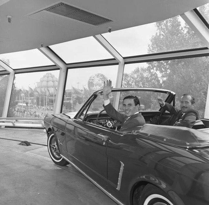 Avec Colin au volant d'une Ford Mustang à la foire Mondiale de New-York 1964