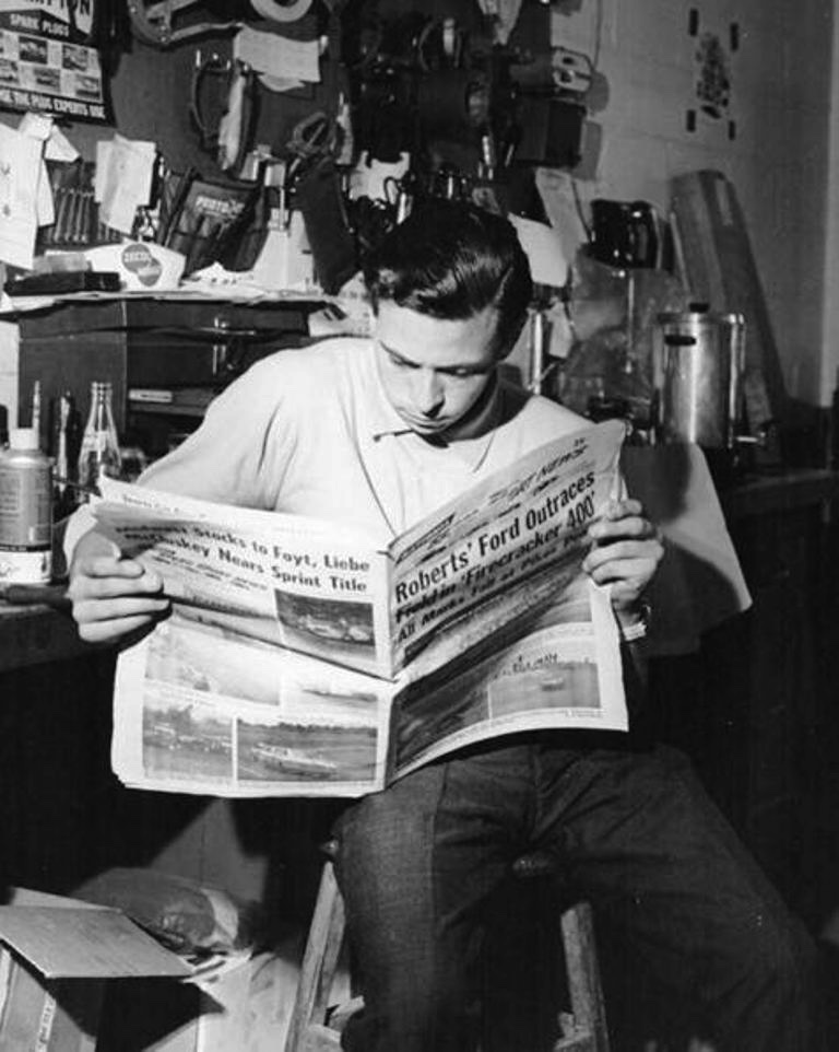 Le même journaliste à Indianapolis 1963 : vous aurez reconnu Stirling Moss venu encourager son ami Jimmy !