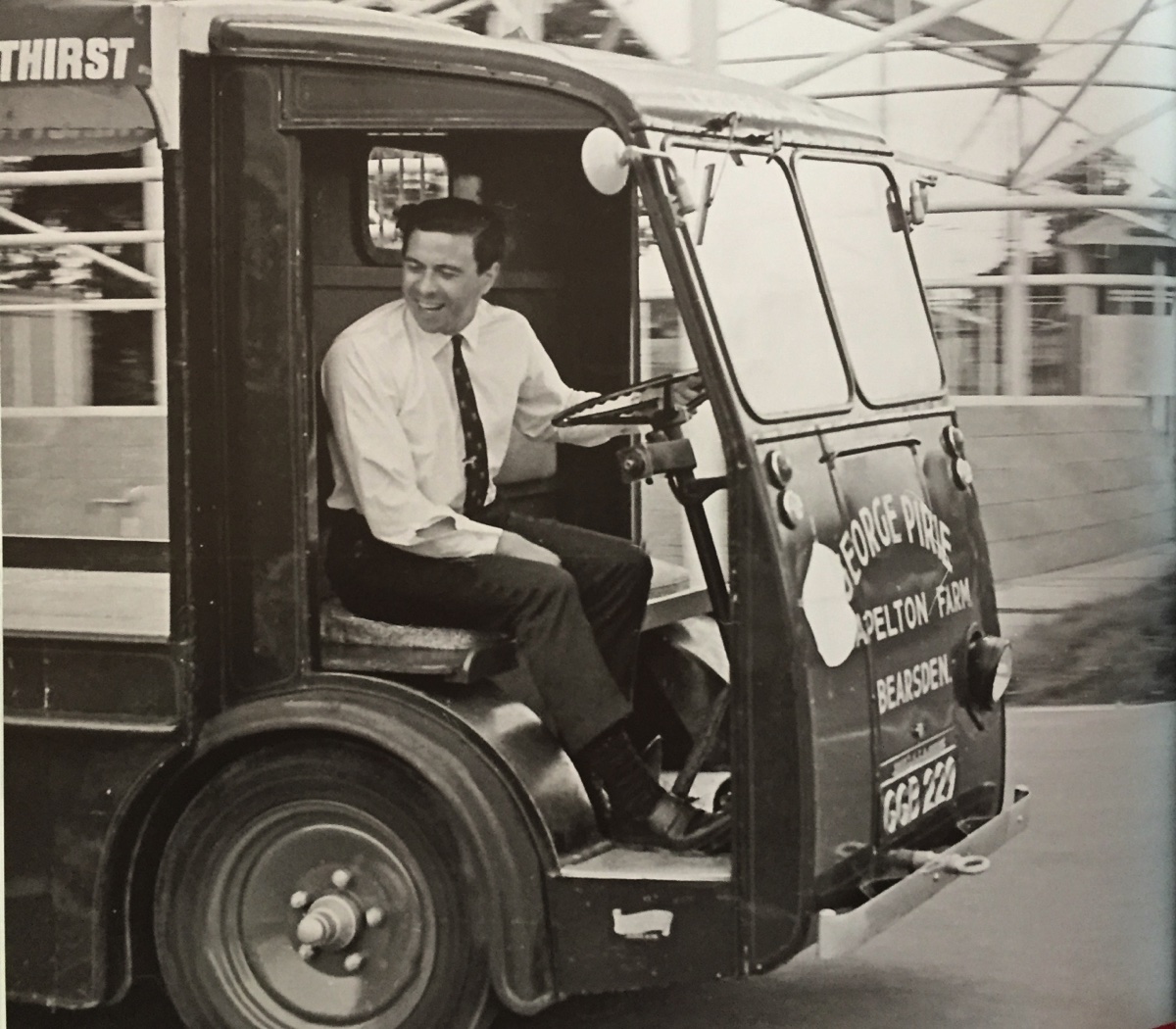 JIm au volant d'une Reliant ! A la sortie de l'usine