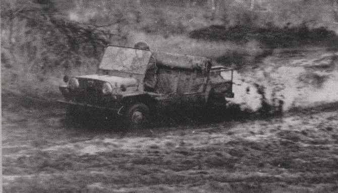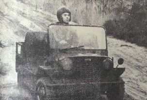 Jim s'essaie sur une Mini Moke dans un camps d'entrainement militaire...