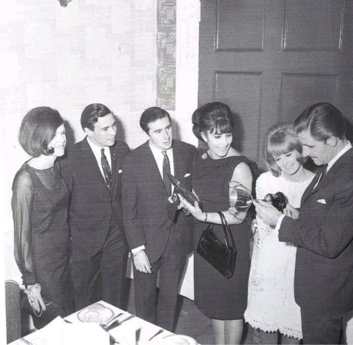 Novembre 1965 dans le Kings Arms Hôtel: dîner annuel du Berwick and District Motor Club, le club des pilotes britanniques : Jim, Jackie Stewart, Graham Hill et leurs compagnes