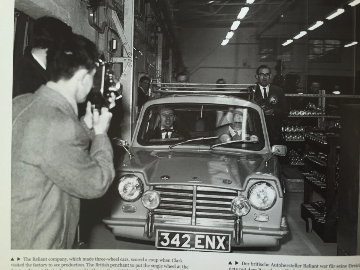 Test à l'usine Reliant sur la célèbre petite voiture à 3 roues anglaise,