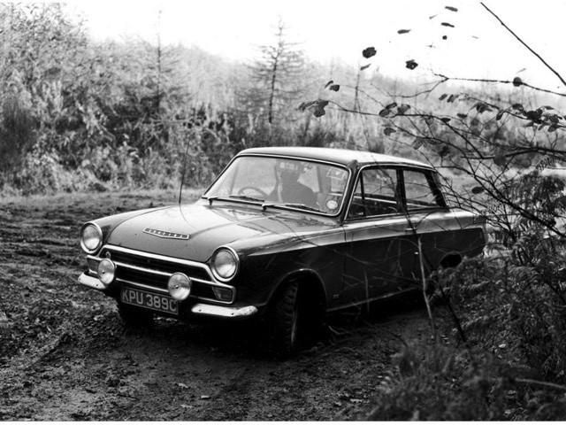 La Lotus-Cortina dans les bois du tracé du RAC 1966