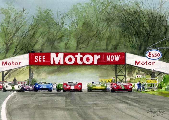 * Tourist Trophy 1965 à Oulton Park avec une première ligne haute en couleurs et Jim sur la Lotus 30