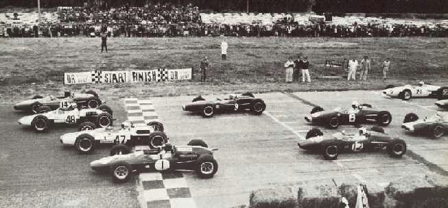 JIm Clark, Phill Hill, (N°48) et Bruce Mclaren au départ de Levin Cup