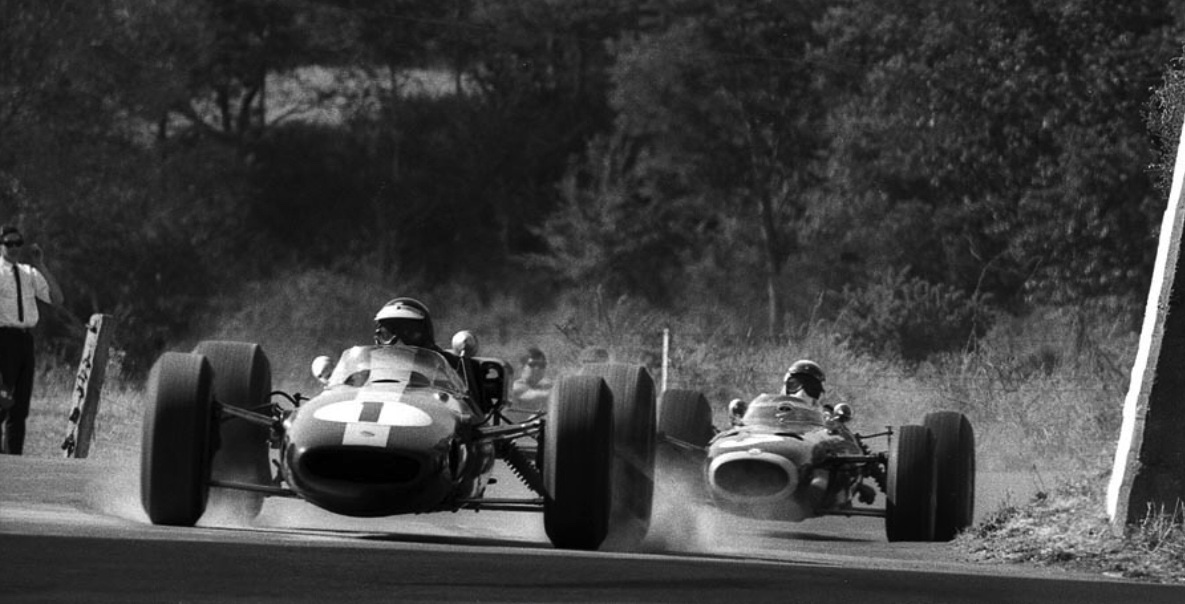 JIm en tête devant Phill Hill sur sa Cooper