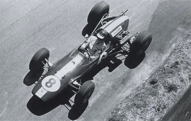 JImmy devant Spencer Martin, courreur local sur une Brabham BT 11