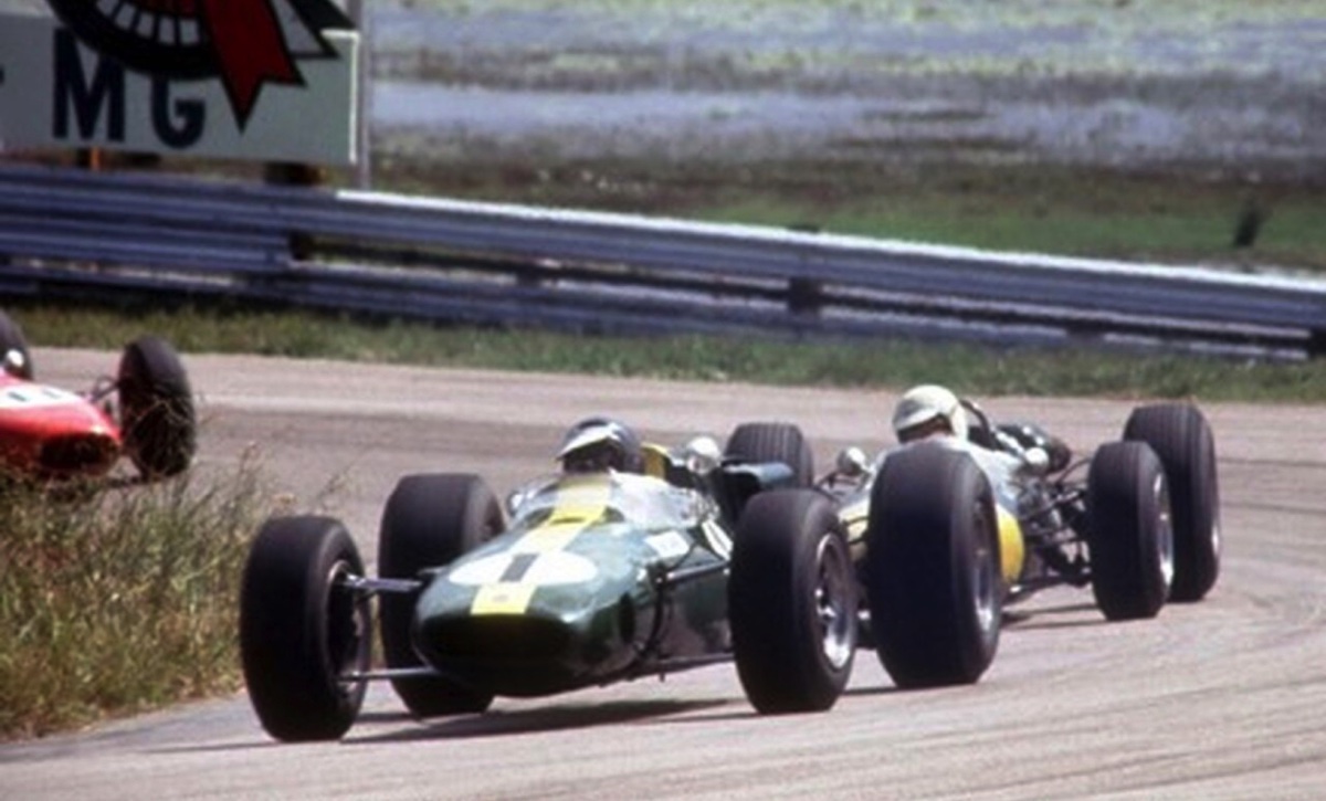 JIm sur la Lotus 39 devant Graham Hill sur la BRM P261
