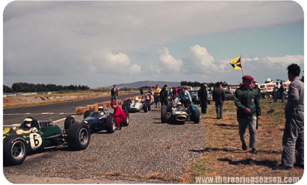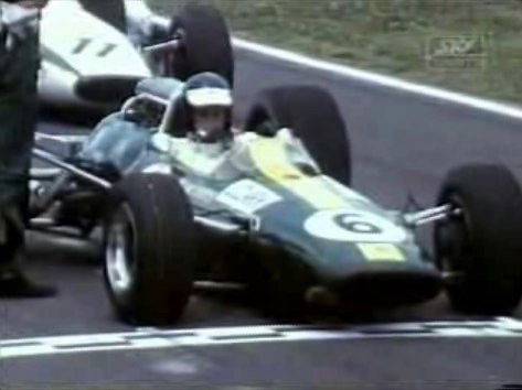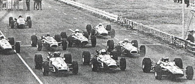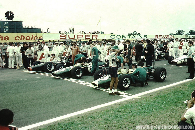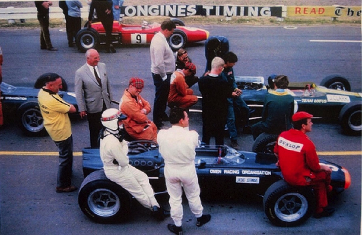 Jim rejoint la grille de départ à Terratonga devant Piers Courage sur BRM