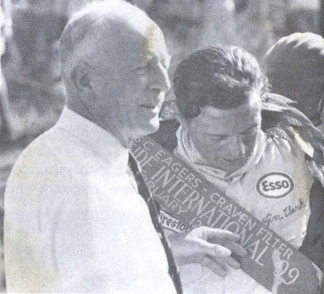 Jim en pleine discussiob avec Jack Brabham à Sandow Park