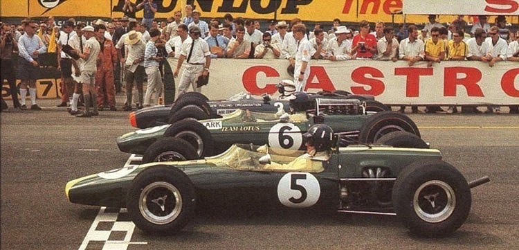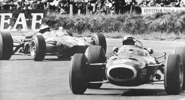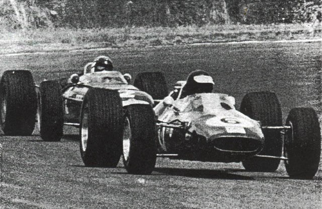 Franck Matich sur Brabhaml BT 7 va être doublé par JIm Clark à Longford