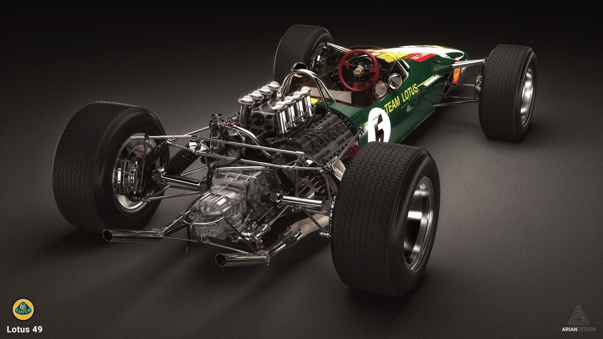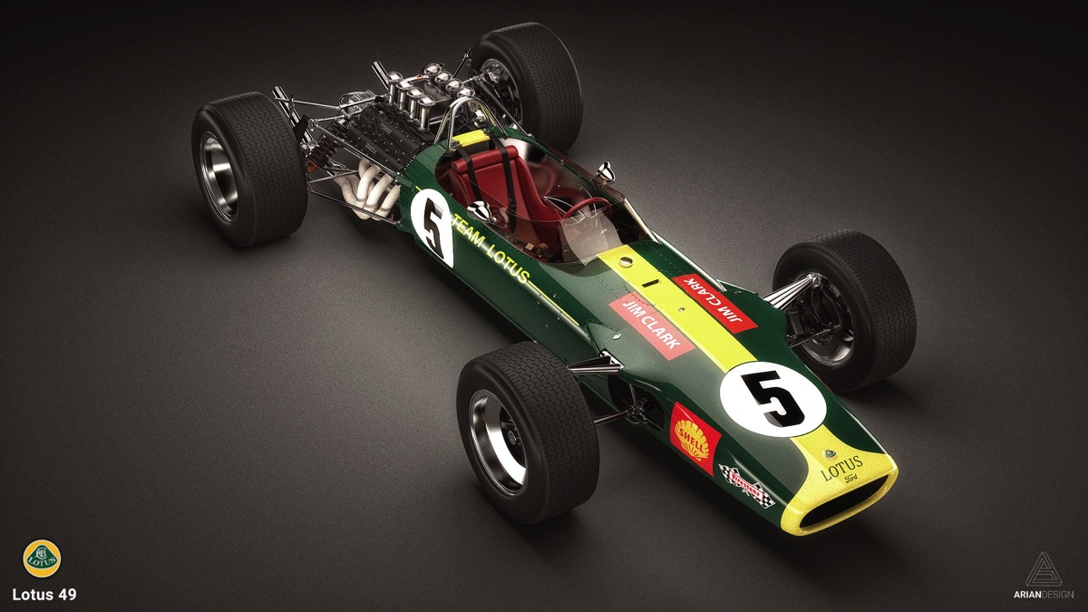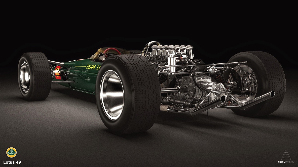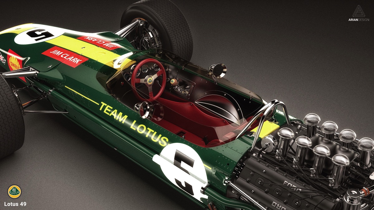 Arian Shamil est un jeune artiste qui utilise le rendu photoréaliste en 2D et 3D. Ces photos de la Lotus 49, retouchées avec un ordinateur sont bluffantes de réalisme et de beauté !