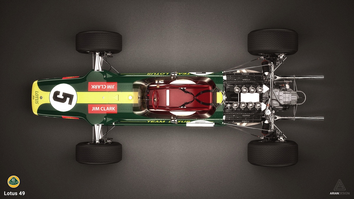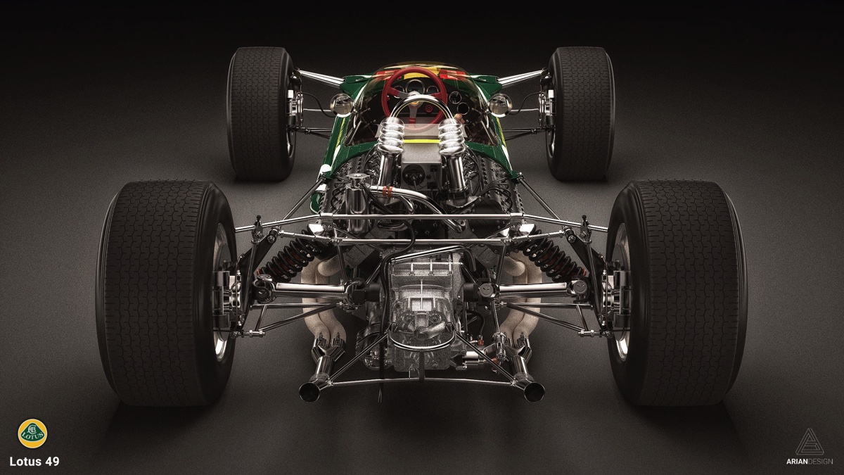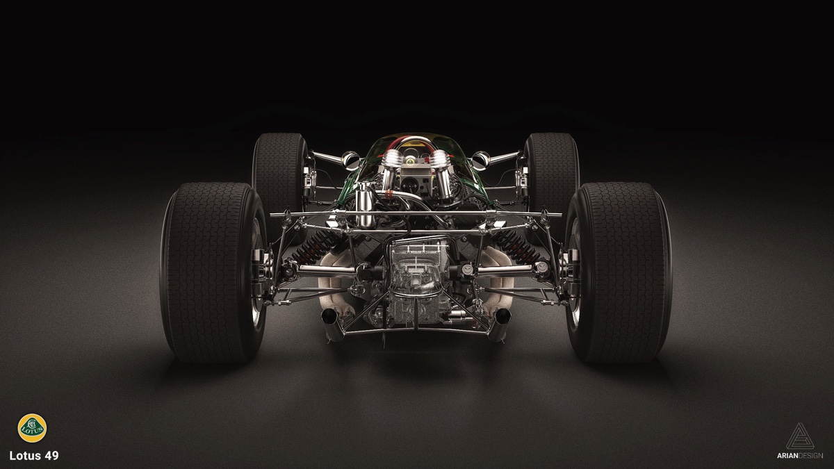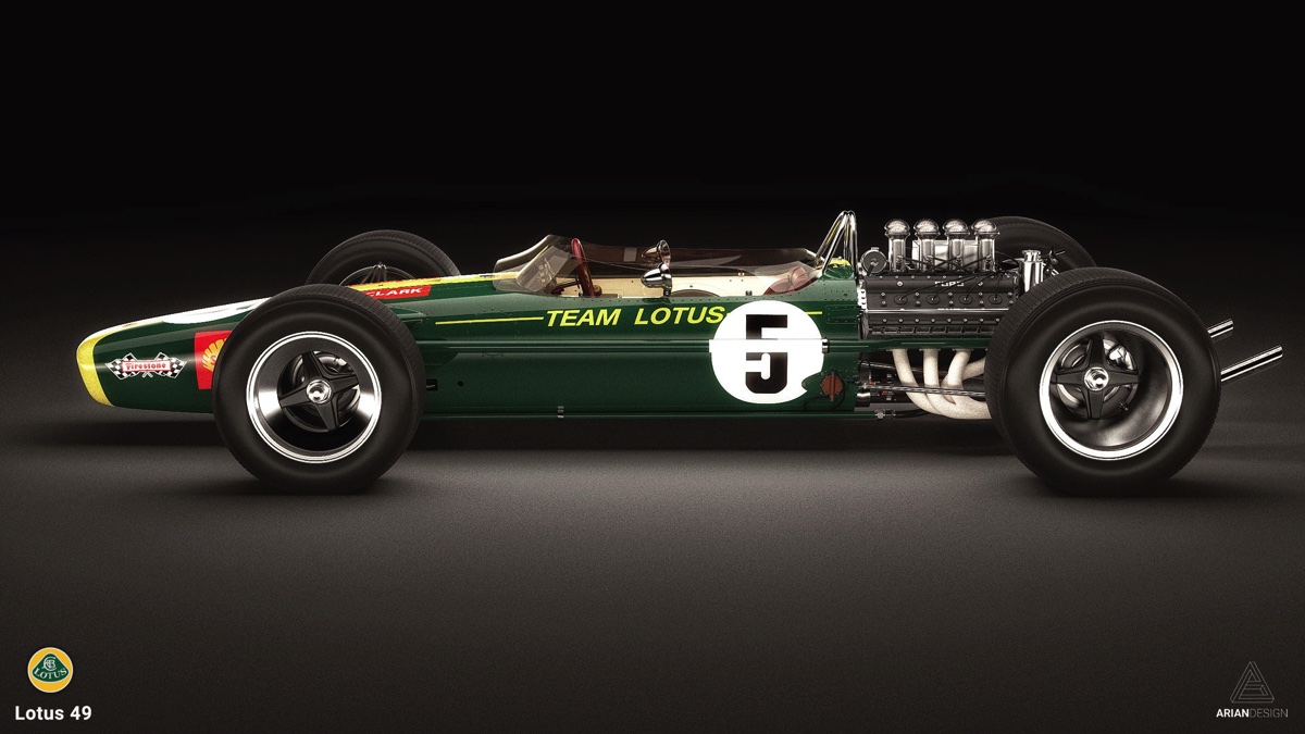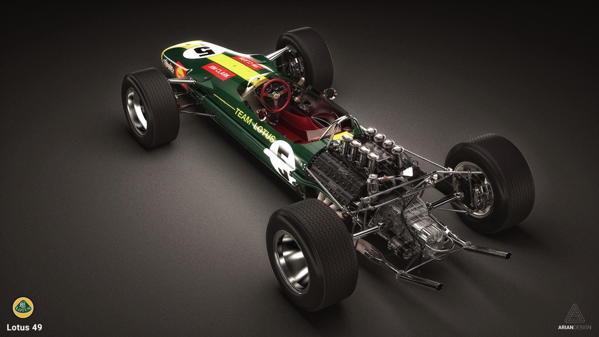 Arian Shamil est un jeune artiste qui utilise le rendu photoréaliste en 2D et 3D. Ces photos de la Lotus 49, retouchées avec un ordinateur sont bluffantes de réalisme et de beauté !