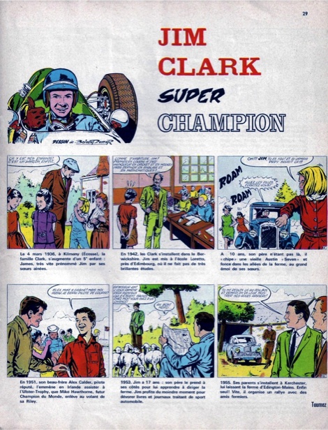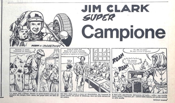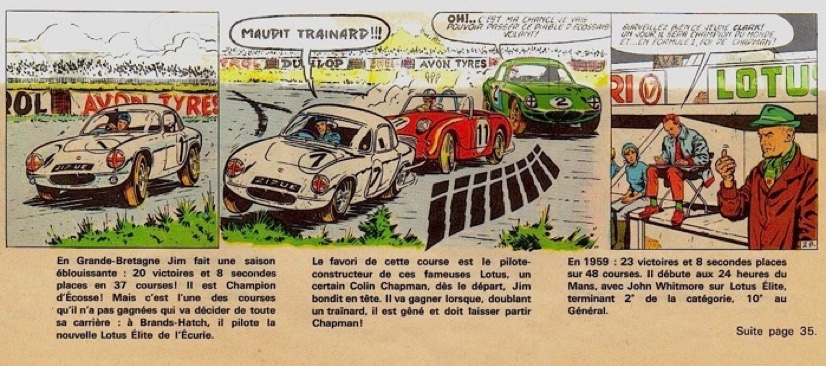 Dans les années 60, le dessinateur français Jean Pierre Boivent , réalise une mini-bande dessinée intitulée "JIM CLARK Super CHAMPION". Il y eu même une version italienne de la BD (voir en bas de la page...).
