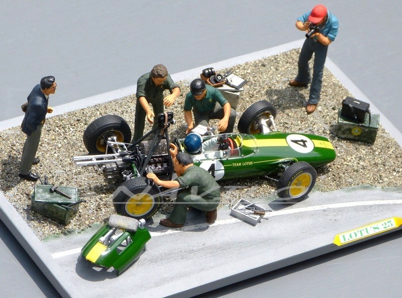 Jean Louis Olivan ne peint pas que des tableaux sur le GP de Pau des années 60, il réalise aussi des dioramas magnifiques dont plusieurs sur Jim Clark :
