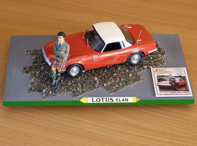 * JIm posant en klit traditionnel devant la Lotus Elan rouge