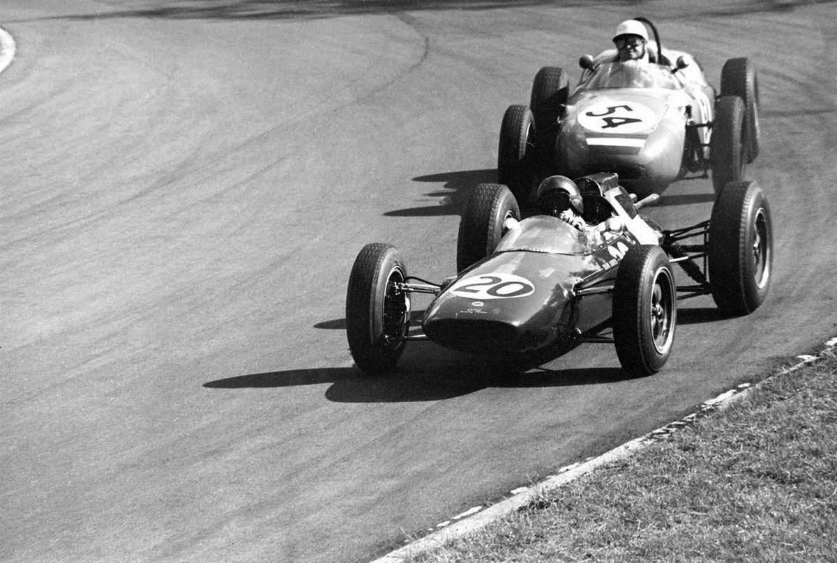 Lombank Trophy Race à Snetterton avec laLotus 24 derrière Graham Hill et sa BRM