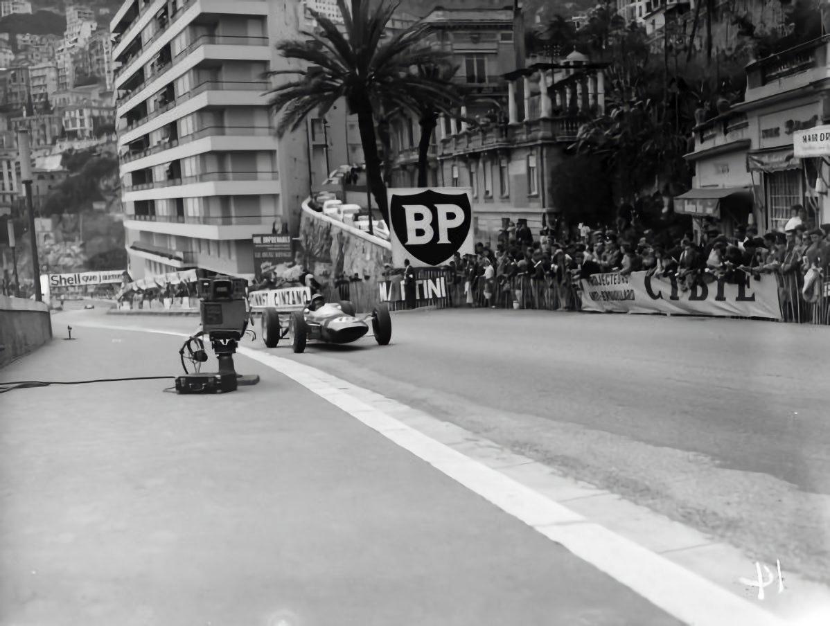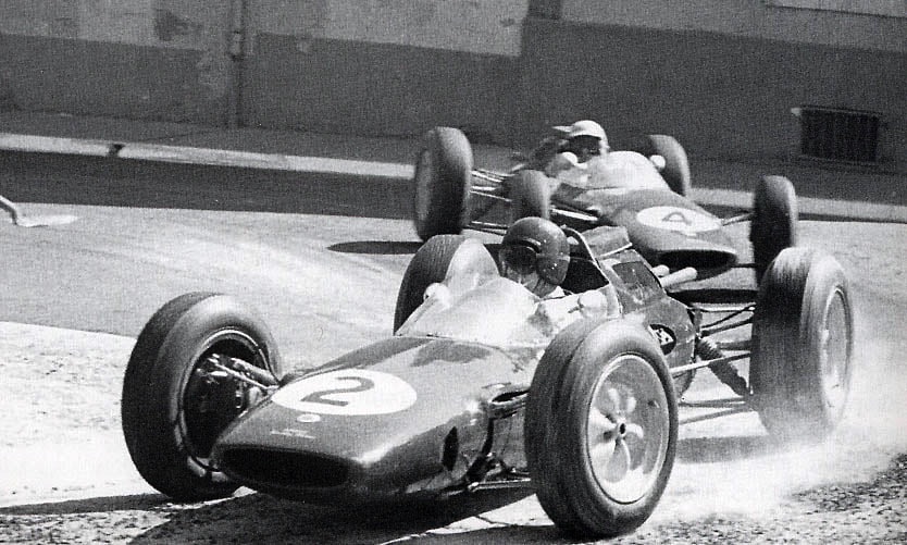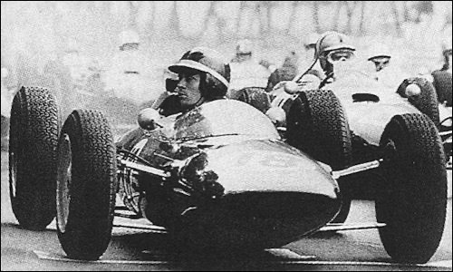 Vue d'en haut... JImmy à la poursuite de Lorenzo Bandini sur sa Ferrari