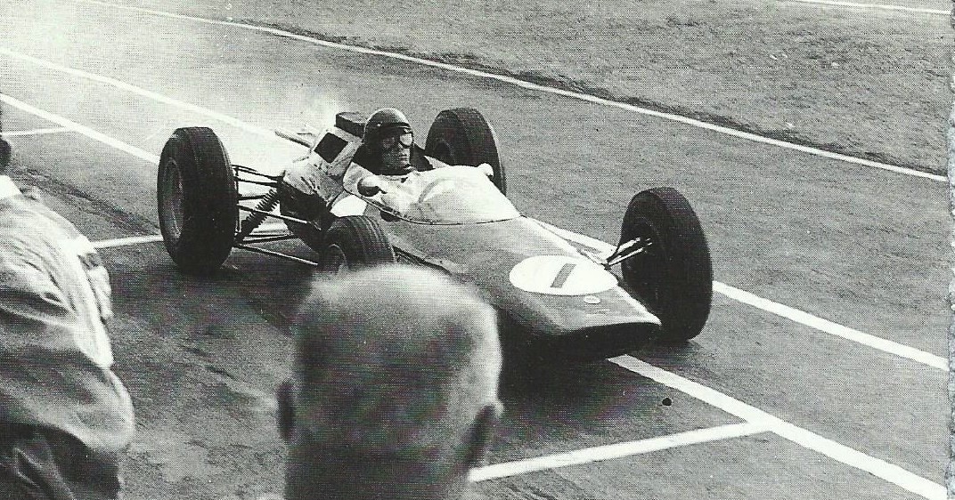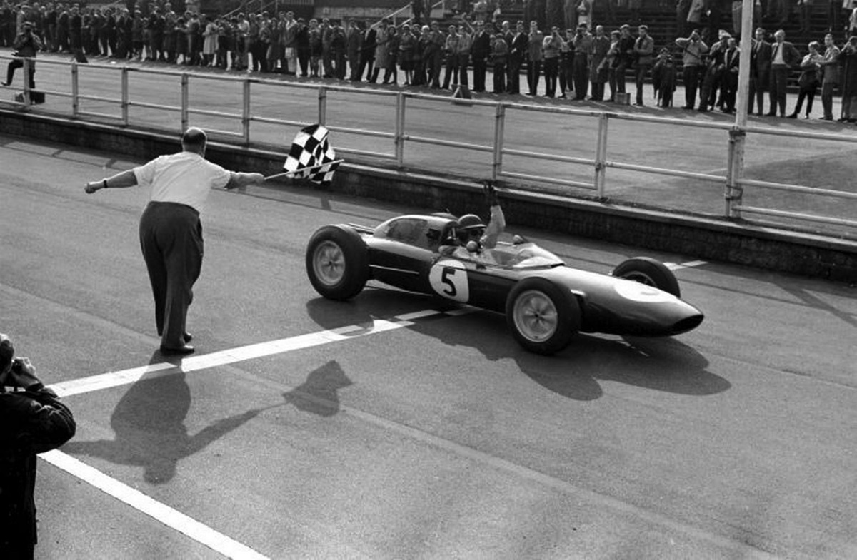 Arrivée du GP de Grande Bretagne à Aintree en vainquer avec la Lotus 25 !