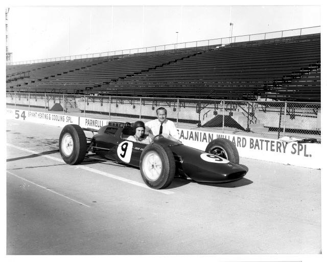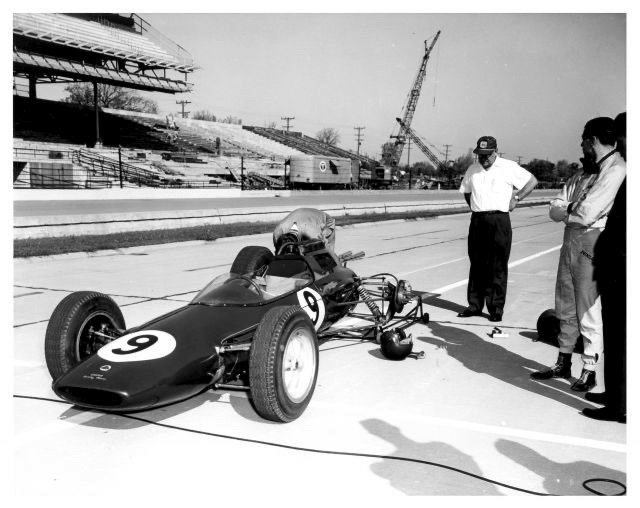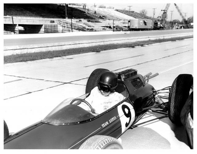 Colin Chapman, les mécaniciens Jim Andruweit et Dick Scammell arrivent sur l’ovale, et, après quelques réglages, Jim Clark effectue une centaine de tour qu’il trouve un peu monotone.