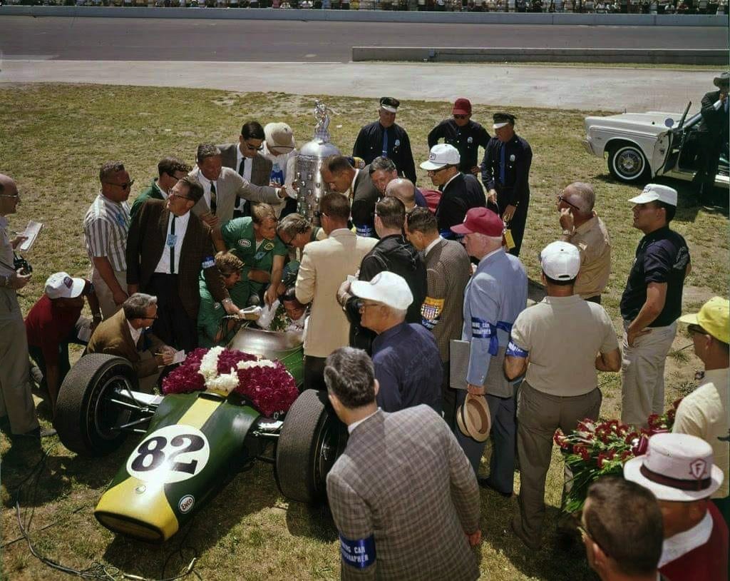 Après être venu se mesurer aux spécialistes d’Indianapolis en 1963 et 1964, Jim gagne sur la Lotus 38 dessinée par Colin Chapman et équipée avec un moteur V8 Ford.
