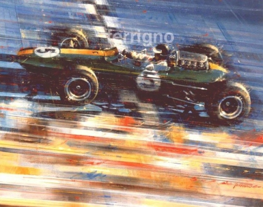 Il a peint à plusieurs reprises Jim Clark sur la Lotus 25, la Lotus 33 et la Lotus 49.