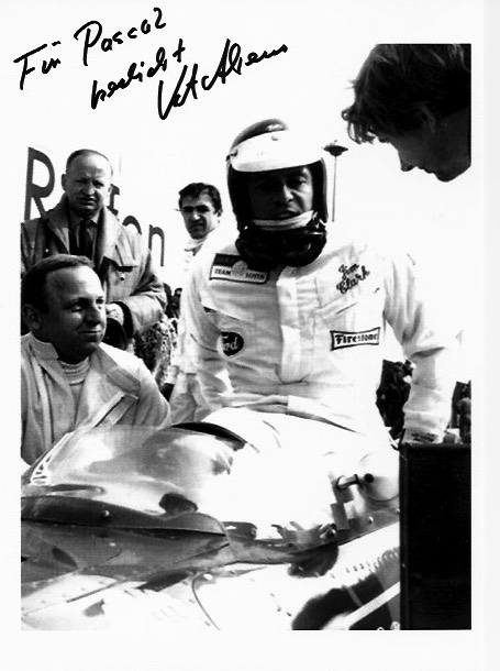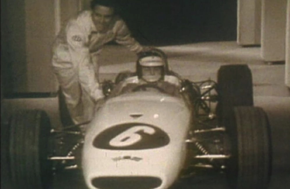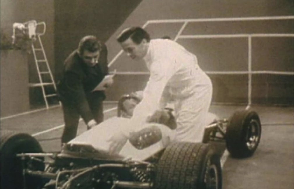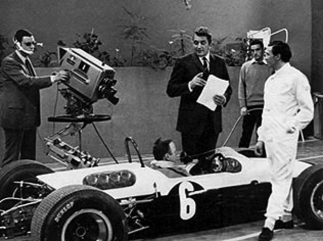 Mais Clark n’en avait pas fini avec sa soirée. Un peu plus tard, il partit accompagner le pilote allemand Kurt Ahrens à Wiesbaden pour participer à l’émission Aktuellen Sportstudio de la chaîne ZDF, animée par le présentateur Werner Schneider. Il s’agissait évidemment d’assurer la promotion de l’évènement qui allait se dérouler le lendemain. Leur intervention était prévue en toute fin d’émission, c’est à dire tard dans la soirée, car il fallait d’abord laisser place aux commentaires relatifs à la dernière journée de Bundesliga qui s’était déroulée dans l’après-midi. On y voit Jim Clark faire son entrée dans le studio en poussant la voiture de Kurt Ahrens, ce dernier étant au volant et casqué. Comme c’était la règle à cette époque dans les émissions de télévision, on remarque que Clark porte une combinaison blanche immaculée, c’est-à-dire exempte de tous les écussons publicitaires qui forment l’ornement ordinaire des pilotes. Werner Schneider à Kurt Ahrens : « je vois que vous êtes venu avec votre mécanicien« . Rires. Puis, ce sont les habituelles questions avec traduction consécutive. A un moment, le journaliste demande à Clark s’il est exact qu’il a touché 10.000 DM pour participer à cette course. Clark élude la question, avec un sourire gêné, sans doute choqué par tant d’impudence. Puis, il est beaucoup question de Kurt Ahrens, la vedette allemande du moment et un des favoris de la course, ainsi que de sa Brabham. Werner Schneider à Clark : « si je comprends bien (après ce que venait de dire Clark sur Kurt Ahrens et sa Brabham, ndr), il ne me reste plus qu’à vous souhaiter la seconde place pour demain. » Clark : « je n’ai pas dit ça ! » Rires.