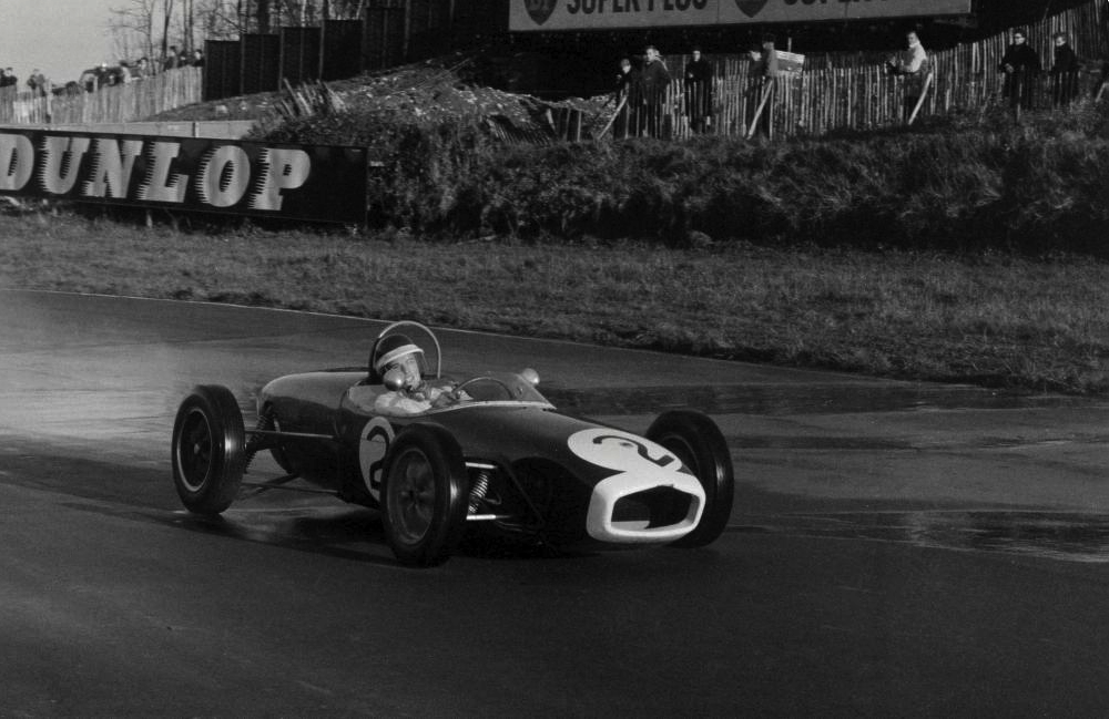 Sur le circuit d'Aintree avec la Lotus 18 FJ