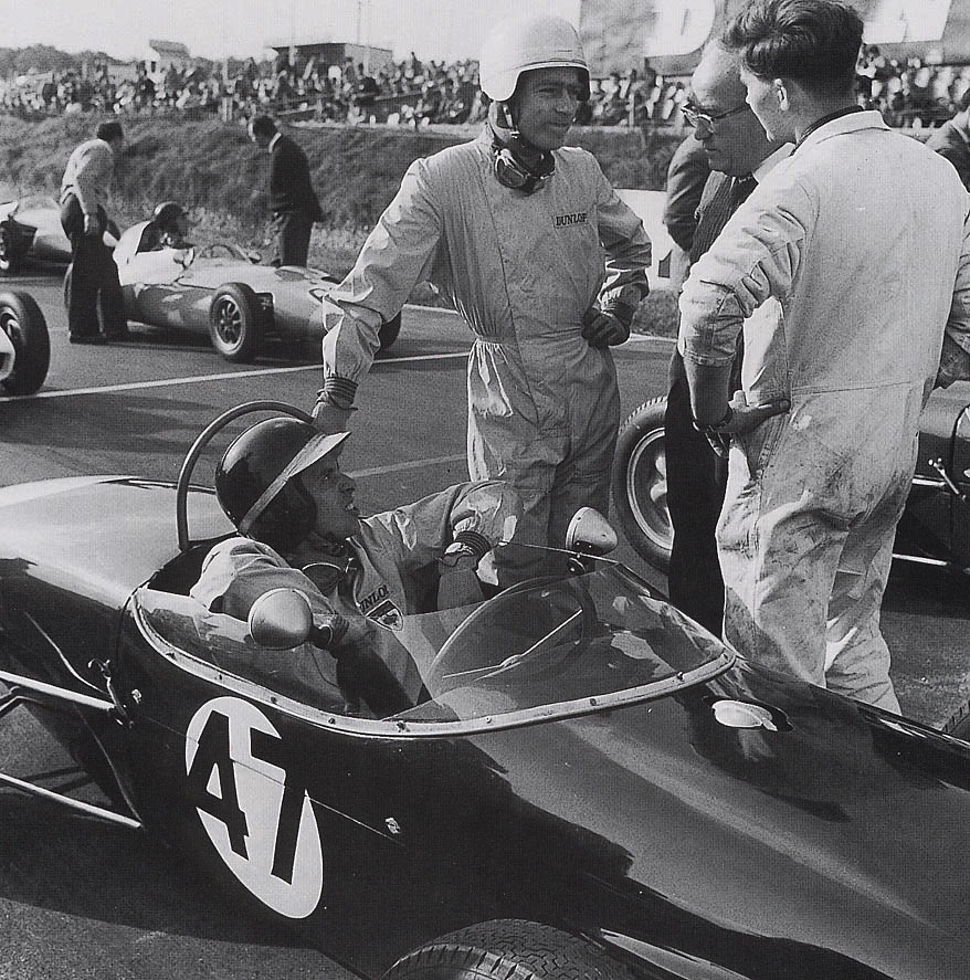 Brands Hatch 1960 : Boxing Day : Jim discute avec d'autres pilotes dont Peter Arrundel
