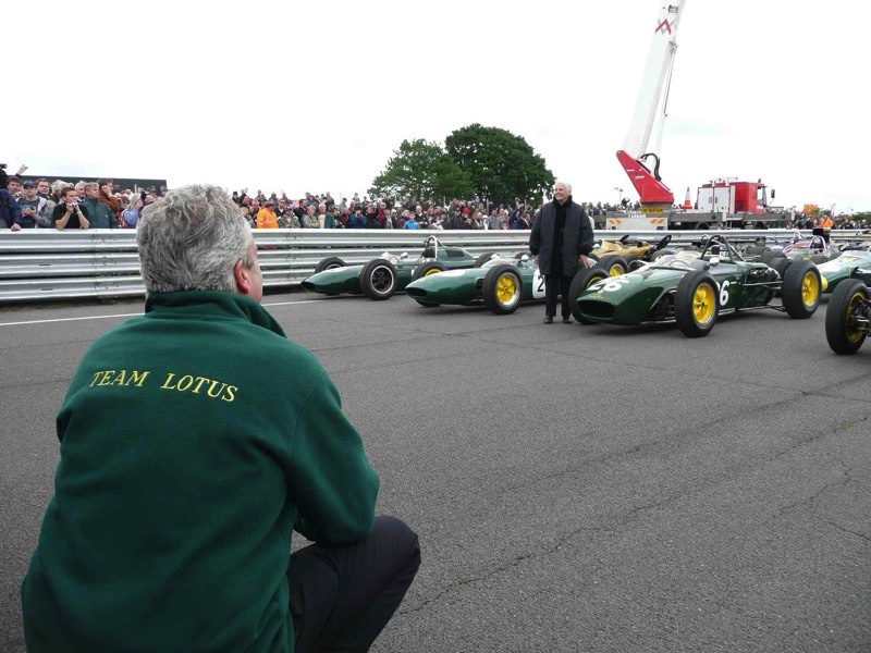 Le point fort de cette journée sera la photo d’Hazel Chapman, la veuve de Colin, posant devant les monoplaces alignées et, spontanément, mettant les bras en croix en regardant vers le ciel !