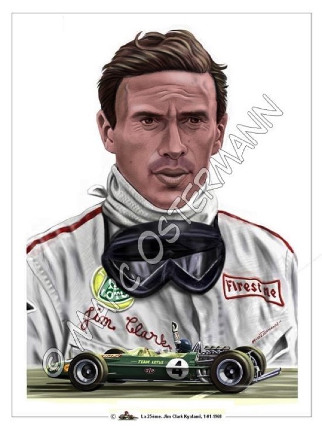 Jim Clark a inspiré plusieurs artistes dont Marc Ostermann du site “Pilotes de Légendes”, spécialiste en caricatures extraordinaires de grands pilotes présents ou disparus.