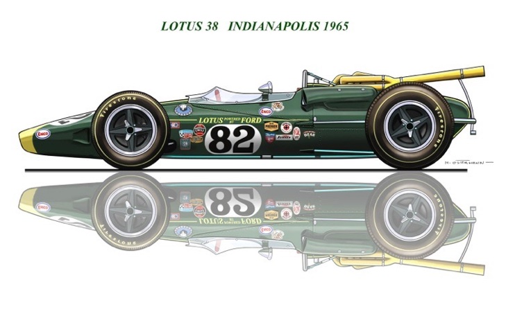 • La Lotus 38 du vainqueur des 500 miles d’indianapolis ...Jim Clark (avec tous ses stickers...)
