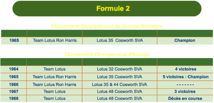 Il y brilla et remporta plusieurs championnats nationaux et internationnaux (trophées de France, British Formula two championship, championnat d'Europe de F2).